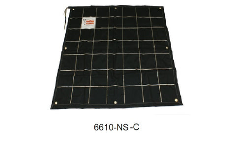 A black 58" x 120" protective ground anti-skid mat. It provides a method for workers to establish an equal potential zone for multiple grounding applications. The ground mat is manufactured of vinyl polyester fabric, with high ampacity, tinned-copper braid sewn into a grid pattern. The braided copper on the grid connects to a six-inch termination stud on the corner of the mat. The ground mat is then bonded to the equipment being worked on by using a safe and reliable ground cable assembly. Bond multiple mats together. Easy to store. Reversible. Easy to clean with standard hose pressure or a power washer (allow to dry before storing).WARNING: Cancer and Reproductive Harm – www.P65Warnings.ca.gov
