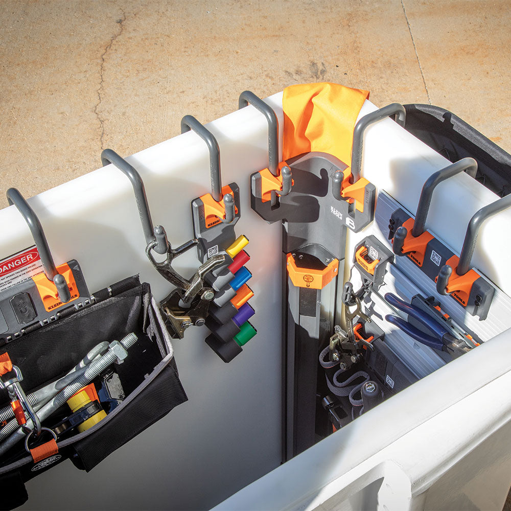 - S-Hook modules are hung horizontally across the rim of an aerial bucket to maximize space.